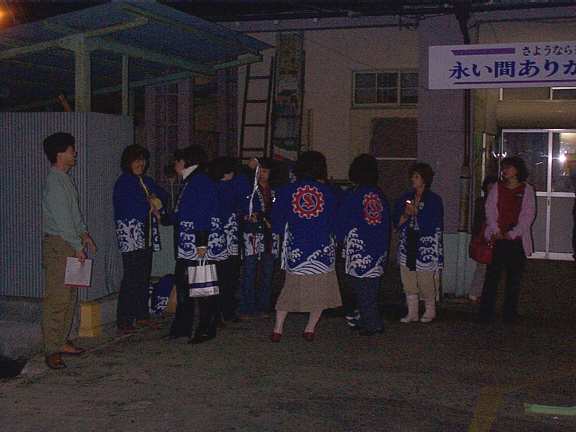 商工会の人たちがセレモニーの準備を始めます